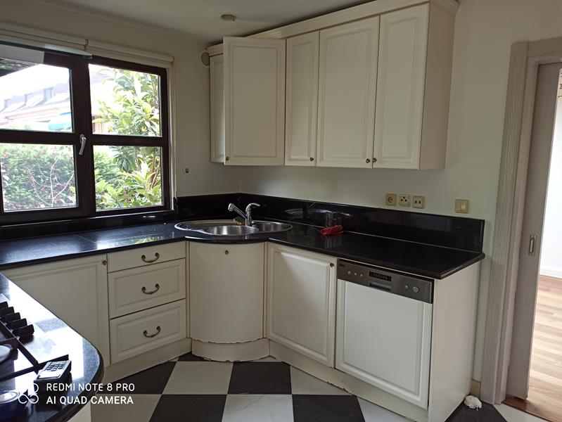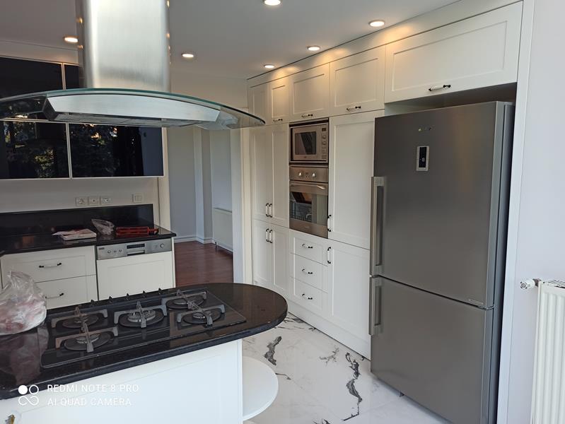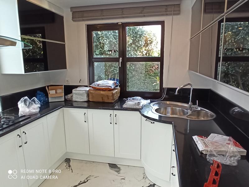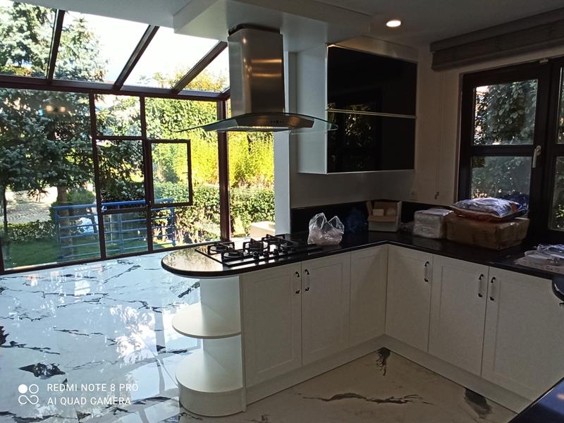 Mutfak dolapları, lake country tarzında yeniden üretilerek hem estetik hem de işlevsel açıdan yenilenmiştir.
