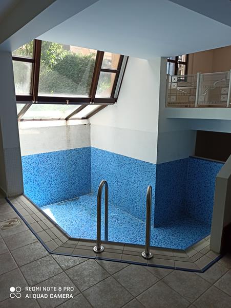 İç mekândaki kapalı havuz alanı, betonarme taşıyıcı sistemle güçlendirilip üzeri kapatılarak seramik kaplama yapılmıştır.